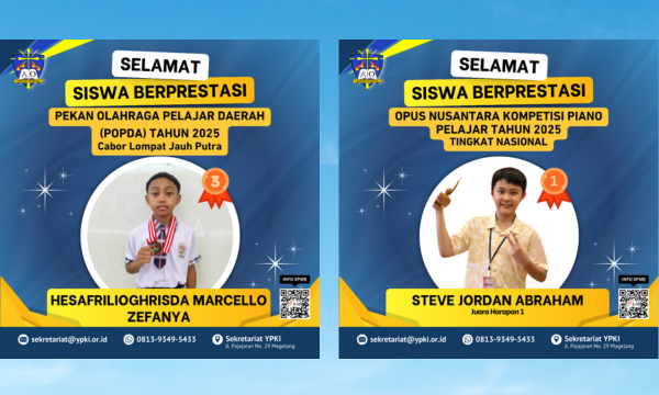 Kami mengucapkan selamat kepada semua siswa SD Kristen Indonesia yang telah mencapai prestasi luar biasa di POPDA 2025 dan Kompetisi Piano Pelajar (Tingkat Nasional). Keberhasilan ini adalah hasil dari kerja keras, dedikasi, dan semangat yang tinggi. Tetap rendah hari, terus belajar dan berkembang, berbagi inspirasi, dan siapkan diri untuk tantangan berikutnya.