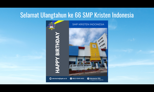 Selamat Ulang Tahun ke 66 tahun SMP Kristen Indonesia. Terus semangat dalam membangun pendidikan di Indonesia dan semoga dengan bertambahnya usia, sekolah ini bisa mencetak para generasi bangsa yang unggul dan berwawasan tinggi.