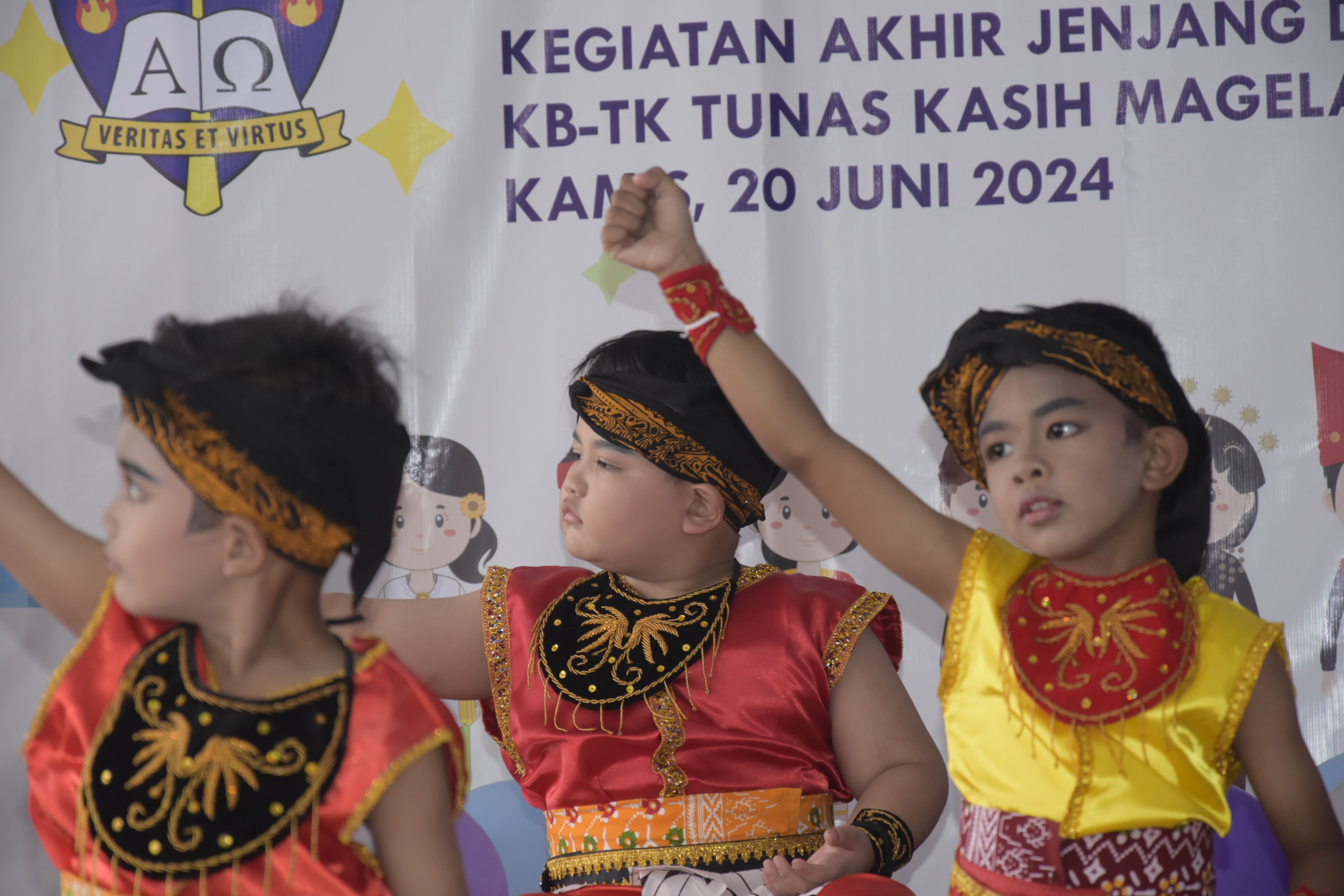 KB/TK Tunas Kasih Magelang 20 Juni 2024 menggelar Gelar Budaya yang berkolaborasi dengan orang tua murid dan pihak lainnya. Selain menggelar Gelar Budaya juga acara ini sebagai perpisahan bagi anak-anak TK Tunas Kasih yang naik kejenjang berikutnya. Selamat buat anak-anak KB/TK Tunas Kasih yang telah lulus dan akan melanjutkan kejenjang berikutnya. Tuhan memberkati selalu.