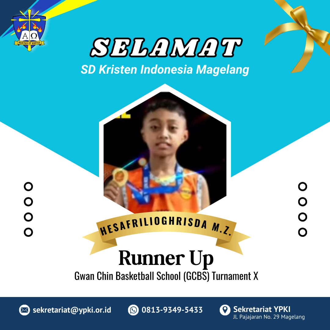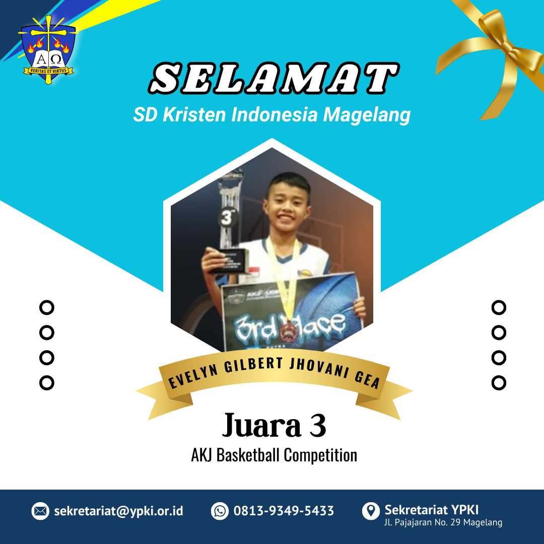 Selamat untuk David Gamaliel M. dan Hesafrilioghrisda Marcello Zefanya dari KB/TK Tunas Kasih dan SD Kristen Indonesia Magelang masing-masing meraih juara 3 dan Runner Up. Selamat juga untuk Jeremy Ivander Adley, Steve Jordan Abraham, dan Evelyn Gilbert Jhovani Gea dari SD Kristen Indonesia Magelang telah meraih Juara 3 dalam AKJ Basketball Competition. Terus berlatih dan semangat anak-anak penerus bangsa.