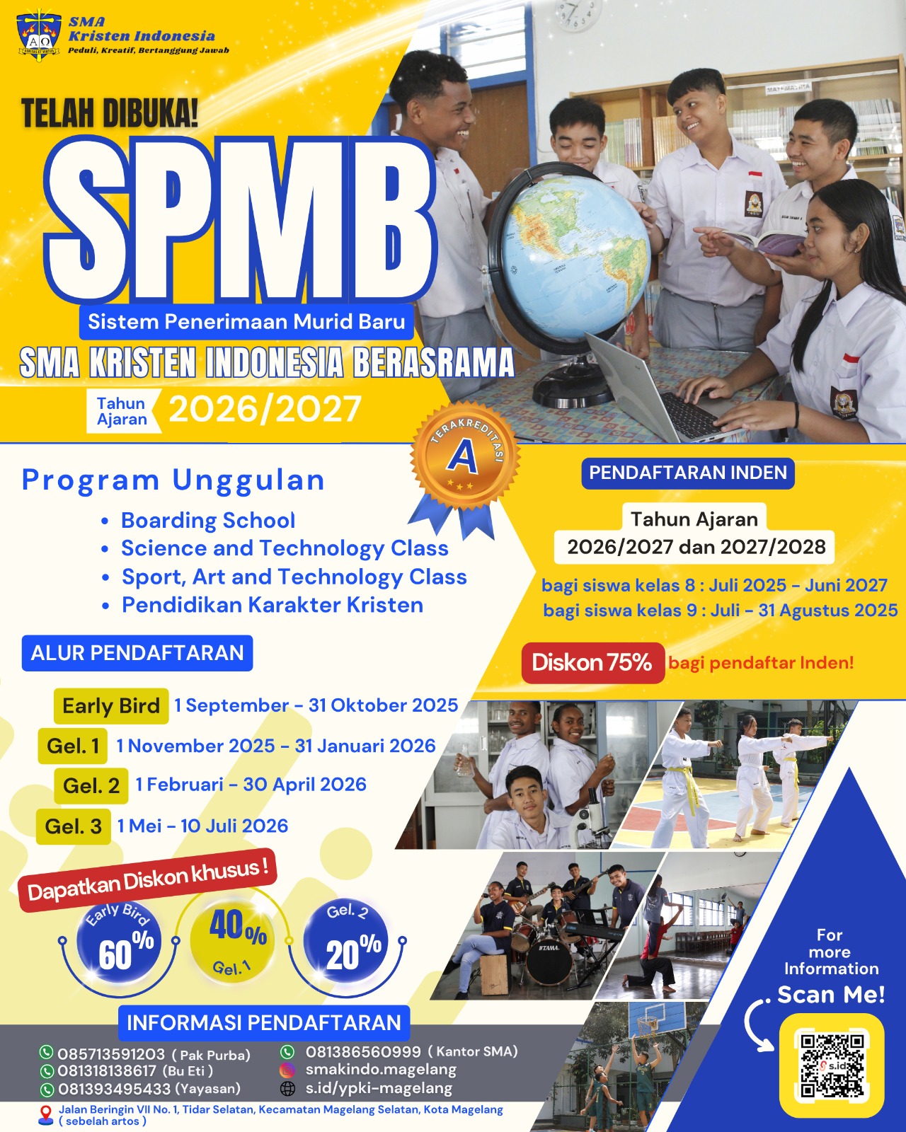 SMAKINDO telah membuka Pendaftaran Peserta Didik Baru untuk tahun pelajaran 2025/2026